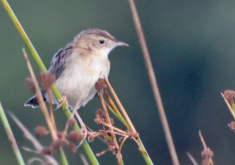 Quand elle vole, la Cisticole des joncs est repérable à son chant monosyllabique émis comme un métronome à intervalles régulier. Il n'y a pas de dimorphisme sexuel.