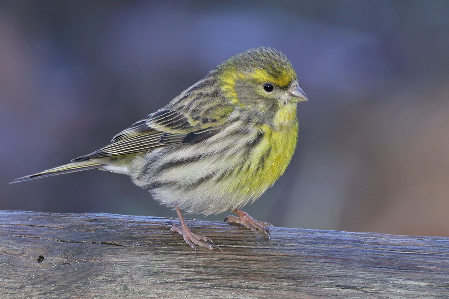 Le bec est plus court que ceux des autres Fringillidés, le dos brun strié, les ailes et la queue sont brun-noirâtre. Il y a un croissant brun autour de la joue. Chez le mâle le front, la gorge et la poitrine sont jaunes. Chez la femelle, le jaune est moins présent et plus pâle. Le Serin cini peut être confondu avec le