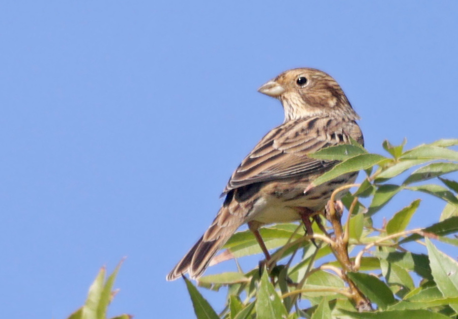 Le Bruant proyer ou (Proyer d'Europe) a un plumage très discret. Son dos est brun-beige rayé de brun-noir, tandis que le dessous est blanchâtre strié de brun noir. La calotte est striée de sombre. La queue est brune. La couleur des pattes varie de rose à jaune. Il n'y a pas de différence entre le mâle et la femelle qui est un peu plus petite.